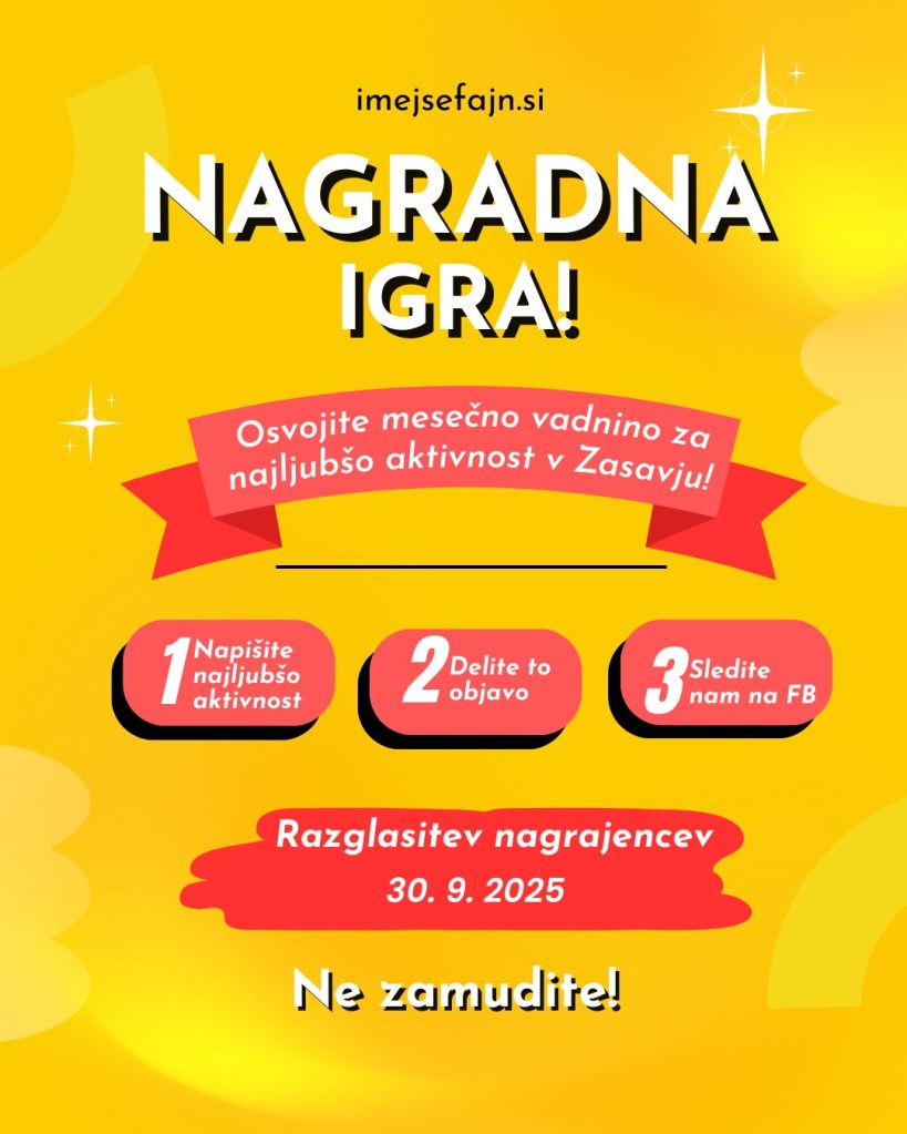 imejsefajn.si bo med sodelujočimi izbral nekoga, ki bo prejel eno mesečno vadnino za svojo najljubšo dejavnost v Zasavju. Če si želiš prejeti en mesec brezplačnih noro BOBRih delavnic sledi navodilom in morda se ti nasmehne sreča!